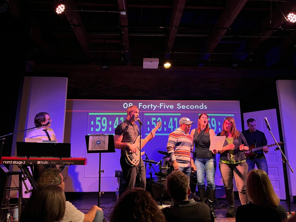 November 5, 2022 – Sang along to Forty-five Seconds by Robbie Ellis at Robbie’s Metric System album release party at The Annoyance.