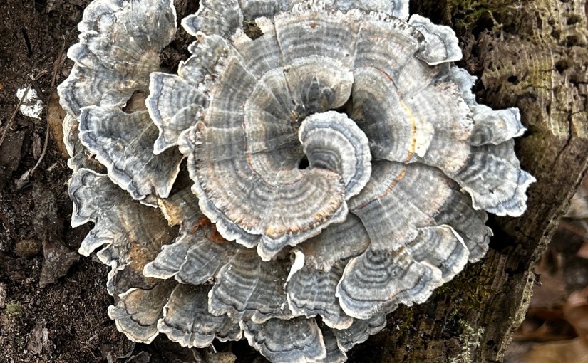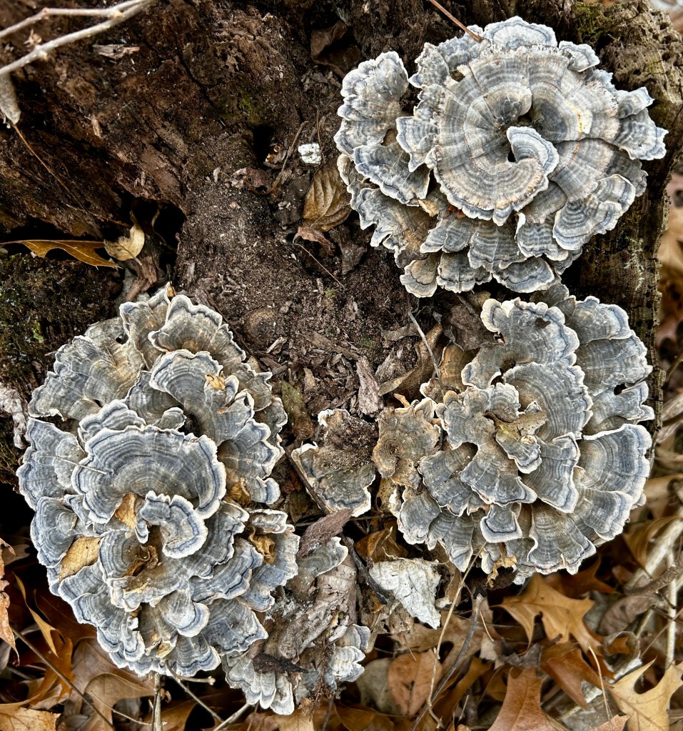 Case in point: these beautiful rosettes of turkey tail! Look at how each rosette is spiraling outward. Inspired!
