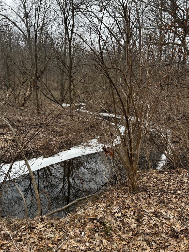 As I walked along Hall Creek, I felt thankful to have the woods to myself. It was a cold morning, lightly snowing. Though it still felt like winter, I saw a bluebird, a robin and a thrush. It was like they were telling me that everything good comes back. That we’re surrounded by goodness all the time.